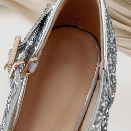 Women's Round Toe High Heels Mary Jane Thick Soled Paired with PU Leather and Lace up Bridal Shoes 7