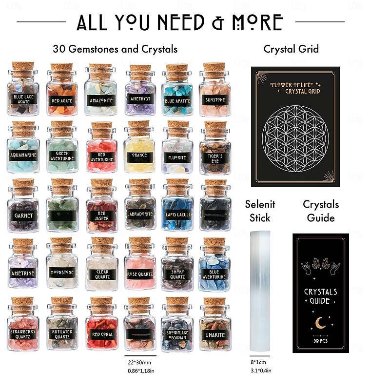 $35.99 - 30pcs/50pcs Witchcraft Crystal Jars Set, Mini Gemstones for Wiccan Altar, Non-Electric Witch Supplies, Mystical Healing Stones in Bottles, Wiccan Crafting Tools, for Halloween 2025. Shop for cheap Halloween online? Buy at lightinthebox.com on sale today!