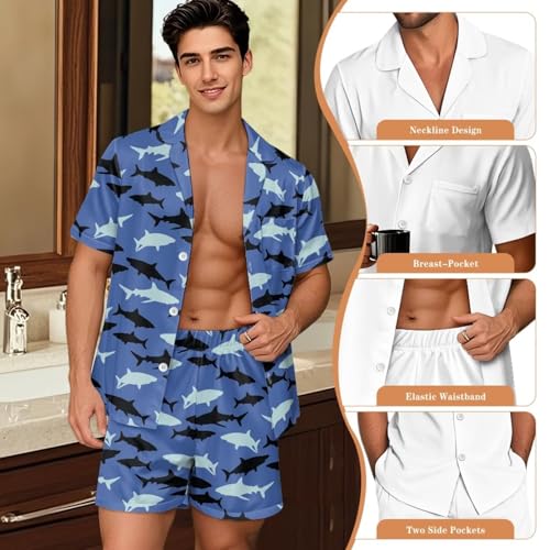 Men Short Sleeve Sleepwear Button Up Shirt and Pant Pajama Set Cozy Soft Homewear Stretchy Breathable Nightwear 6