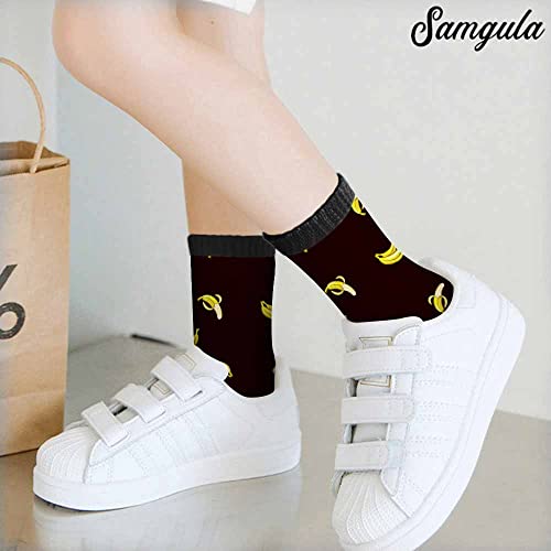 Yellow Banana Crew Socks for Woman Size 6-8 Bright Fruit Peel Glow in Black Space Girls Socks 7