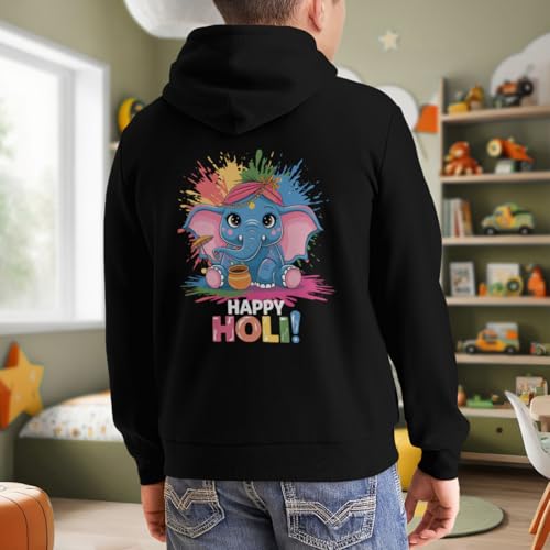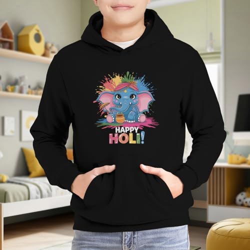 HOT ! Kids Cute Elephant Vintage Happy Holi! Boys Girls Lightweight Kangaroo Pocket Fleece Hoodies