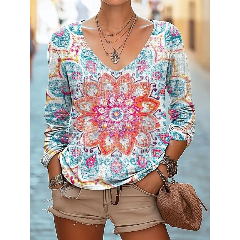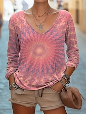 More information about Women's Blouse Tie Dye Flower Bohemia Daily Long Sleeve V Neck Regular Tops Daily Holiday Print Pink Blue Purple Fuchsia Apricot Summer Spring Fall