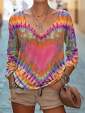 HOT ! Women's Blouse Tie Dye Flower Bohemia Daily Long Sleeve V Neck Regular Tops Daily Holiday Print Pink Blue Purple Fuchsia Apricot Summer Spring Fall