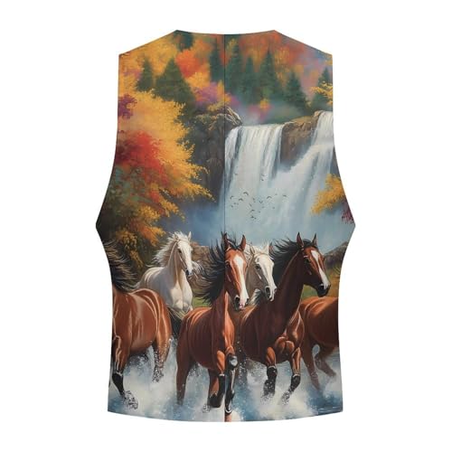 Horses Running River Autumn Trendy Vest Suit for Men V Neck Formal Dress Waistcoat Vests Business Slim Fit