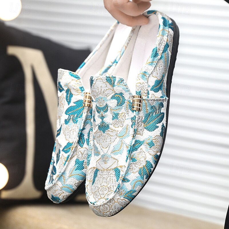 Men's Clogs & Mules Comfort Loafers Penny Loafers Walking Casual Fabric Jacquard fabric Comfortable Slip Resistant Breathable Loafer Black Blue Summer Spring Fall 9