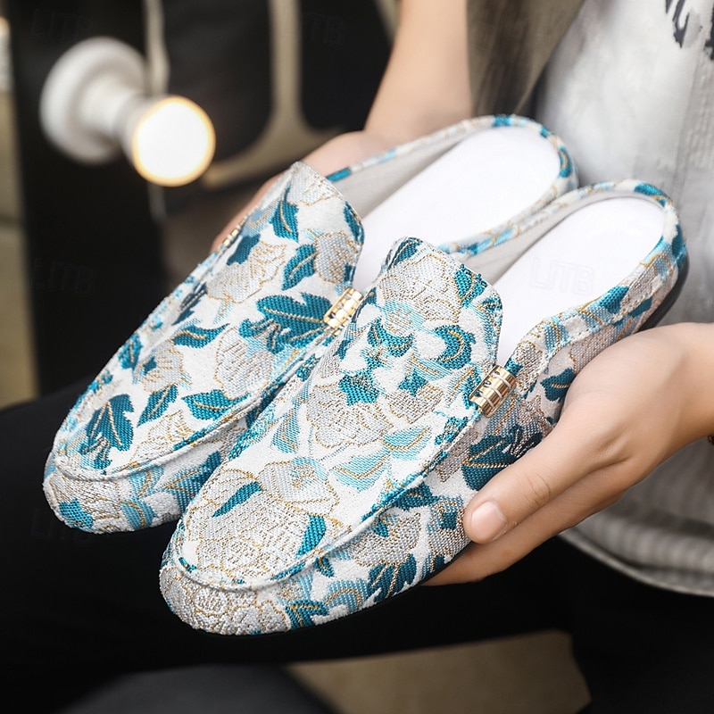 Men's Clogs & Mules Comfort Loafers Penny Loafers Walking Casual Fabric Jacquard fabric Comfortable Slip Resistant Breathable Loafer Black Blue Summer Spring Fall 20