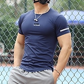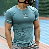 More information about Men's Gym Shirt Compression Shirt Fitness Shirt Crew Neck Short Sleeves Casual Daily Gym Quick dry High Stretch Sweat wicking Patchwork Plain Light Green Royal Blue non-printing Activewear Polyester