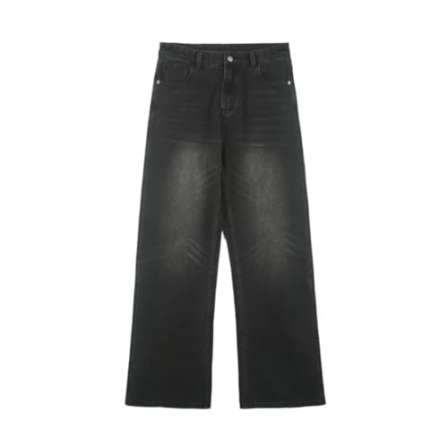 More information about Men’S Retro Washed Jeans Mid Waist Loose Fit Wide Leg Denim Pants High Street Style Zipper Fly Solid Color Jeans