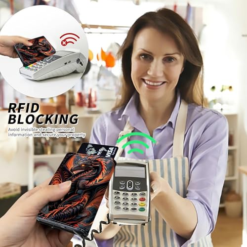 Red Dragon Minimalist Wallet for Men, Pop Up Card Case Wallet for Women, PU Leather Automatic Credit Card Holder Metal Money Clip Wallet RFID Blocking Bifold Pocket Wallet 5