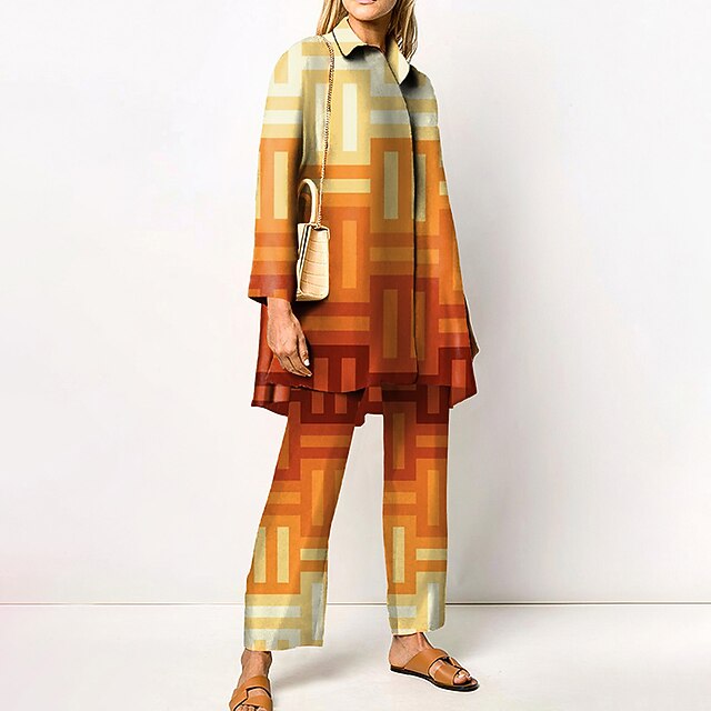 More information about Women's 2 Pieces Streetwear Daily Neon & Bright Shirt Pants Sets Wide Leg Pants Trousers Long Sleeve Shirt Collar Geometric Print Work Daily Pink Red Blue Fall & Winter Regular Fit