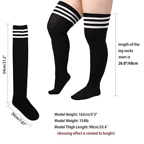 • Plus Size Thigh High Socks: The length from top to heel of the over-knee socks is about 21.2 inches/54 cm, and the toe to the heel is about 7.87 inches/20 cm and width of the stocking mouth is 4.3 inches/11 cm. The socks are suitable for people who are 5'/150cm-5'7"/170cm in height and 135-220 LB in weight.The length of the leg socks worn is 26.8 inches/68 cm and the recommended maximum leg circumference is 19.6 inches/50 cm.