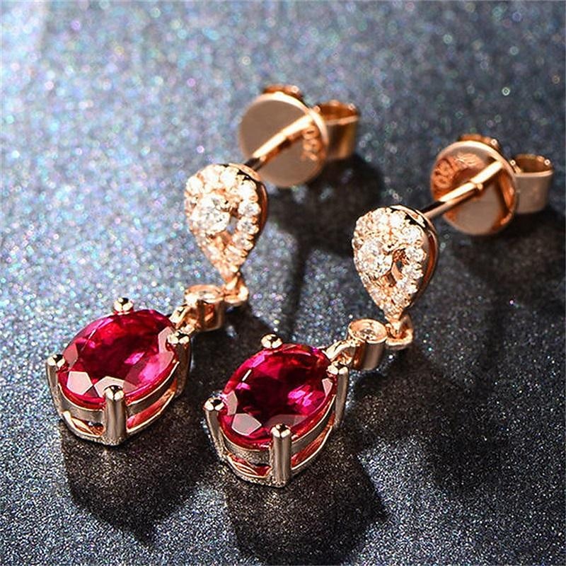 Red Crystal Gemstone Bracelet For Women Buy Three Get One Free Luxury European And American Style Rose Gold Necklace Ring Set 6
