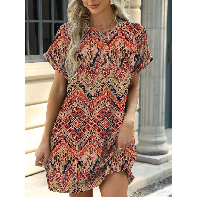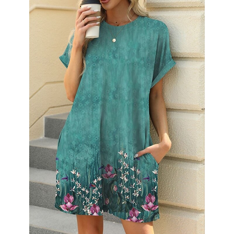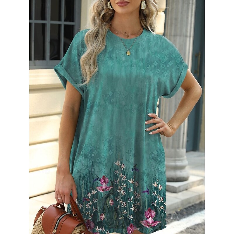 Women's Mini Dress Petite Dress Casual Dress T Shirt Dress Tee Dress Boho Dress Stylish Casual Vacation Daily Regular Fit Floral Leaf Short Sleeve Crew Neck Blue Brown Green Summer 9