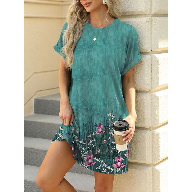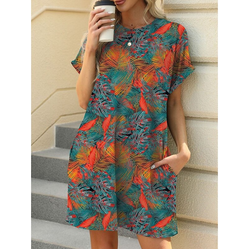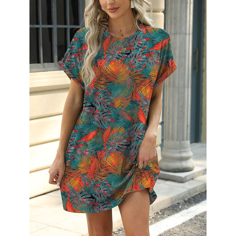 More information about Women's Mini Dress Petite Dress Casual Dress T Shirt Dress Tee Dress Boho Dress Stylish Casual Vacation Daily Regular Fit Floral Leaf Short Sleeve Crew Neck Blue Brown Green Summer