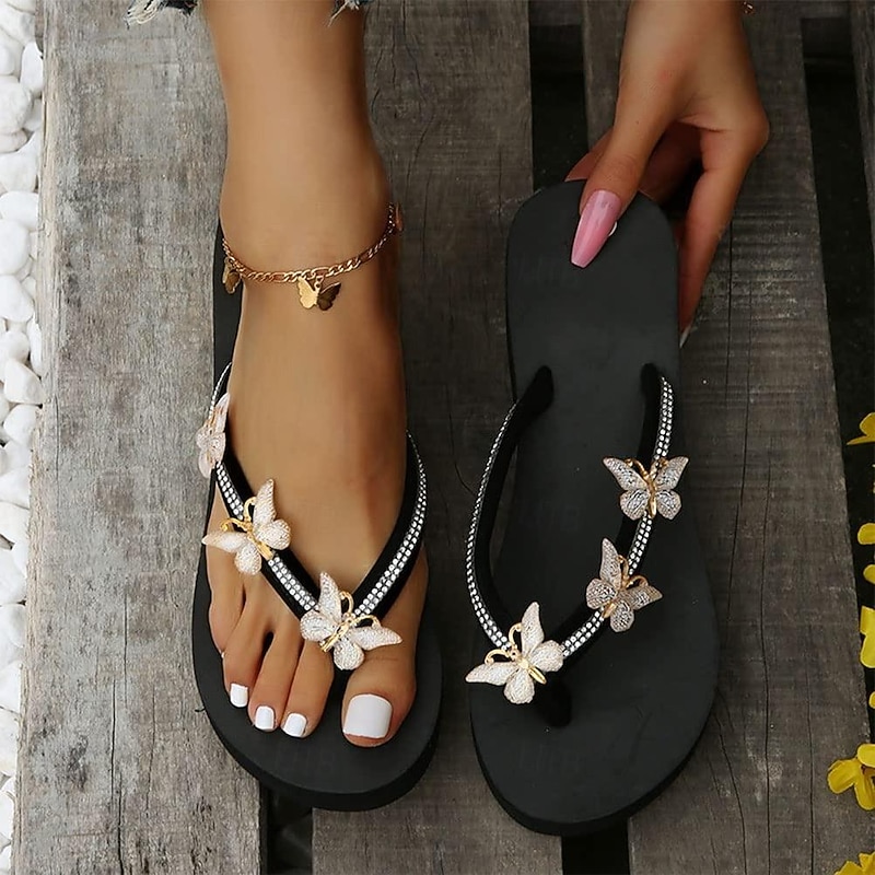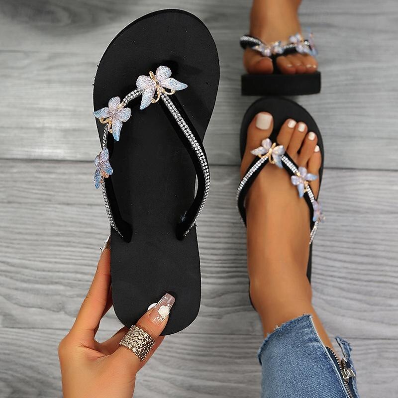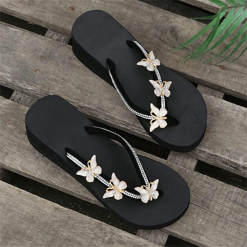 HOT ! Women's Rhinestone Butterfly Wedge Flip Flops – Glam Beach Sandals for Summer Vacation, Pool Party, and Casual Resort Wear