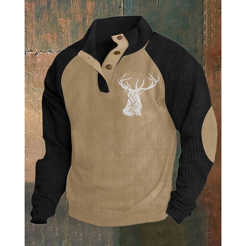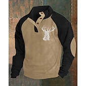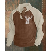 More information about Men's Sweatshirt khaki&black Black Army Green Navy Blue Brown Standing Collar Color Block Reindeer Patchwork Sports & Outdoor Daily Holiday Polyester Corduroy Streetwear Basic Casual Spring & Fall