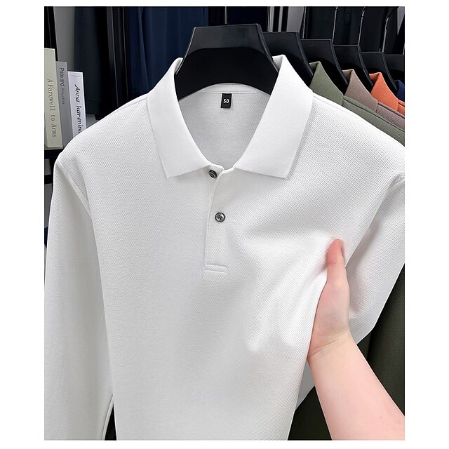 More information about Men's Waffle Polo Shirts Polo Shirts Casual Sports Lapel Long Sleeve Fashion Basic Color Block Textured Patchwork Color Block Fall Winter Spring & Fall Regular Fit White Burgundy Navy Blue Orange