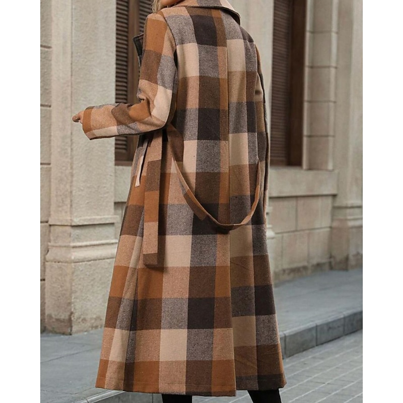 More information about Women's Coat Trench Coat Warm Comfortable Buttons Pocket Fashion Modern Plaid Vacation Going out Double Breasted Long Turndown Regular Fit Long Sleeve Outerwear Coffee Fall Winter