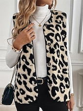 More information about Women's Fleece Vest Vest Warm Comfortable Buttons Fleece Lined Fashion Modern Casual Leopard Going out Weekend Single Breasted Regular V Neck Regular Fit Sleeveless Outerwear Apricot Winter