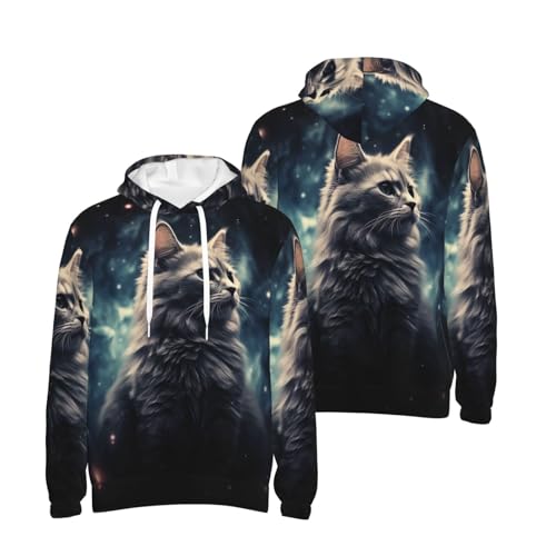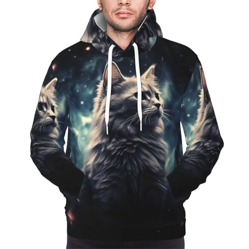 HOT ! Men's Fleece Pullover Hoodie Long Sleeve Hooded A cat in a nebula Sweatshirt Casual Shirts With Pockets X-Large Black