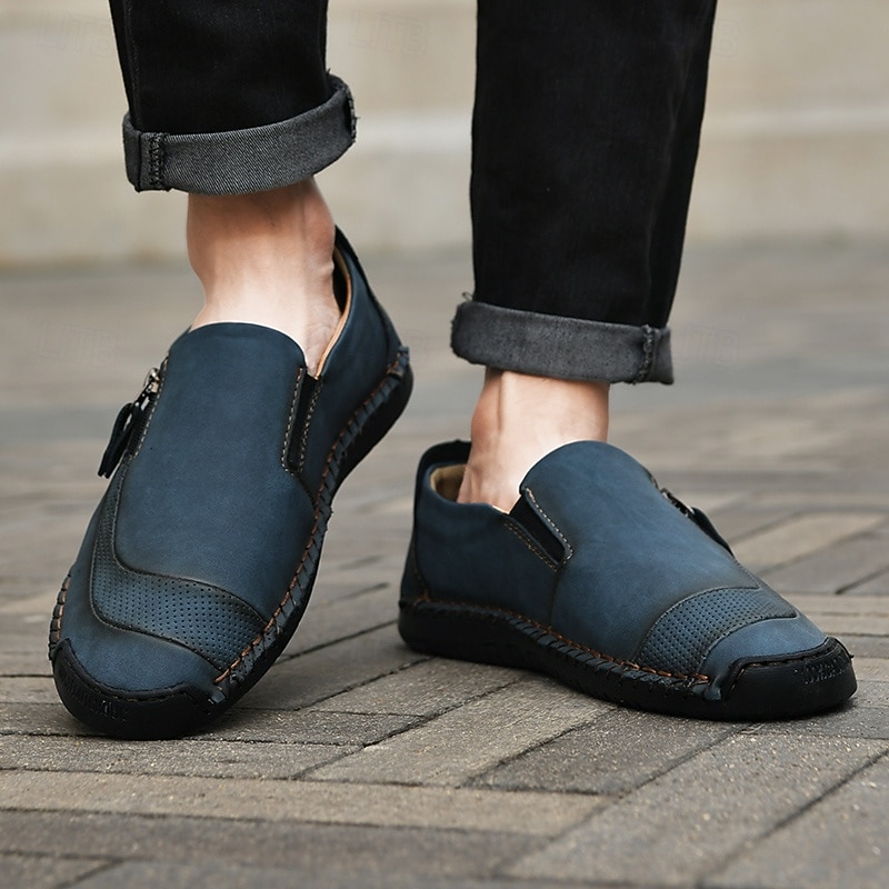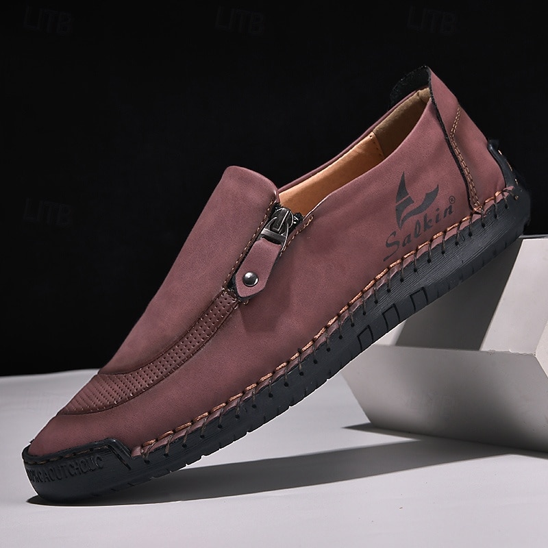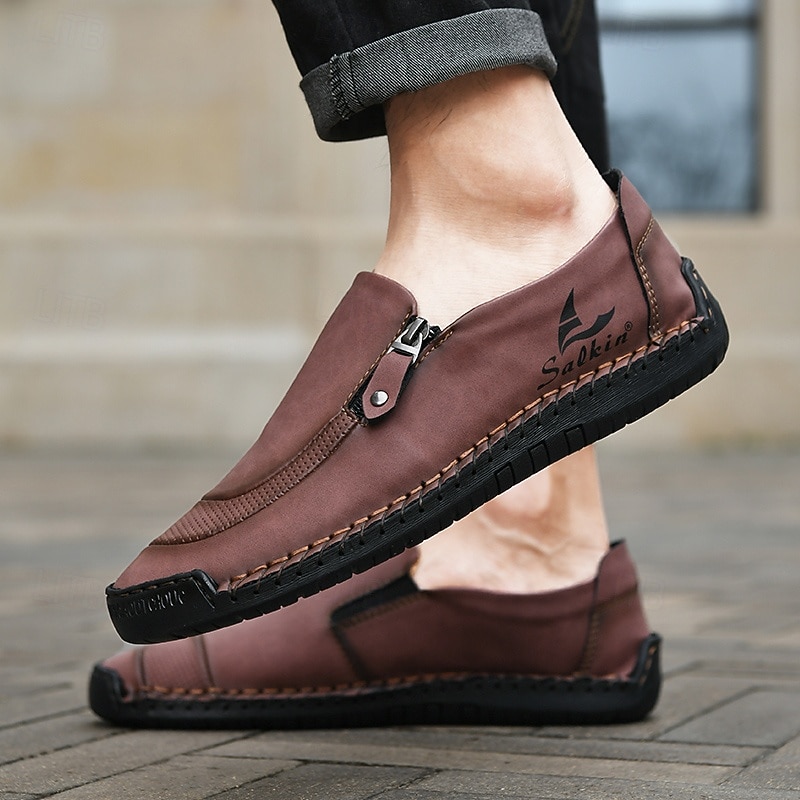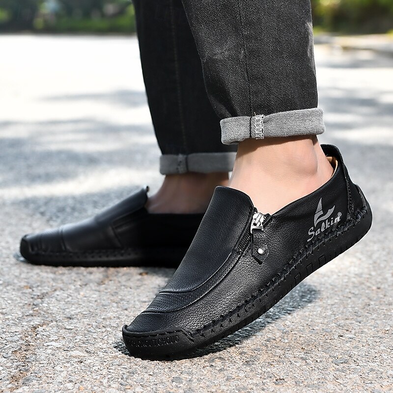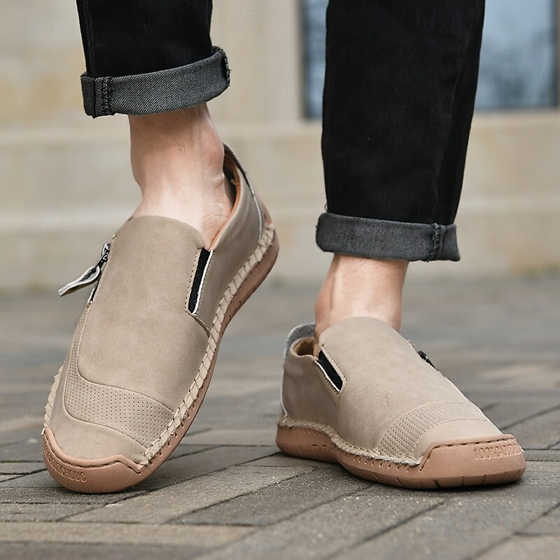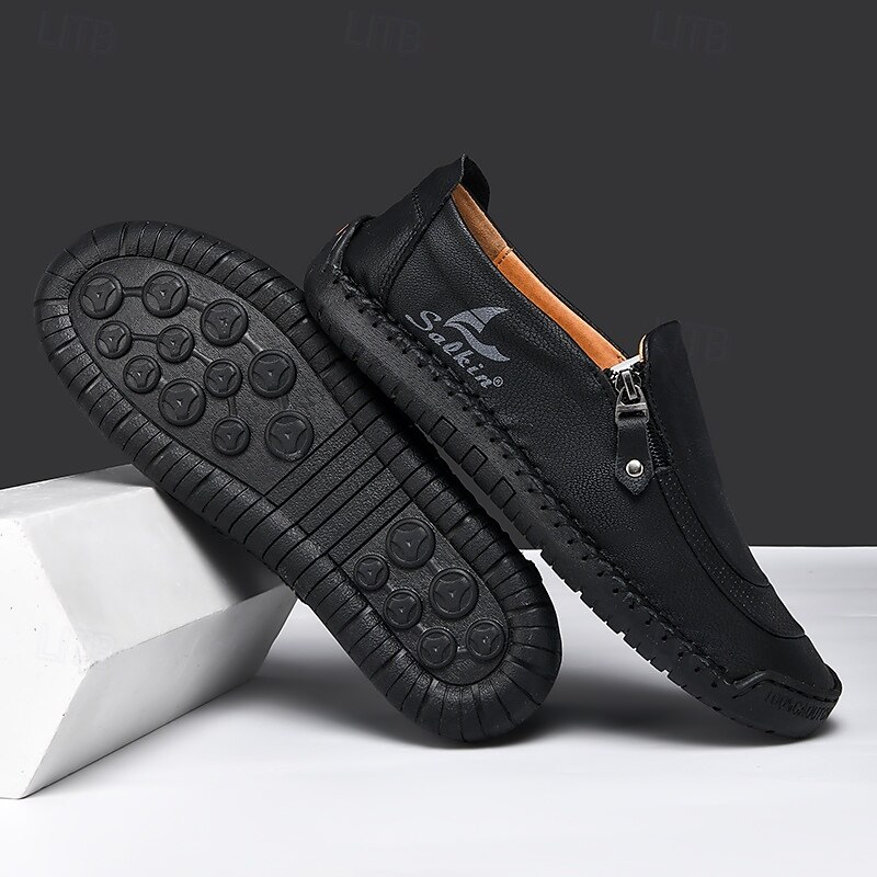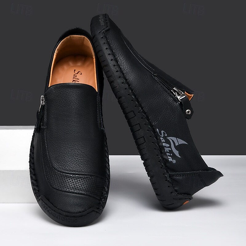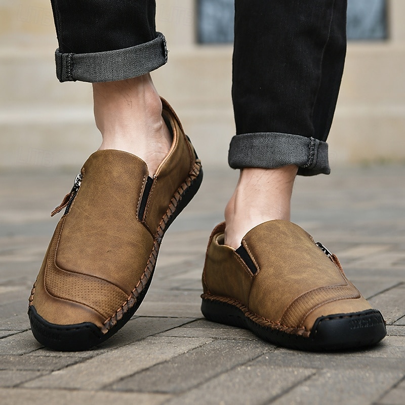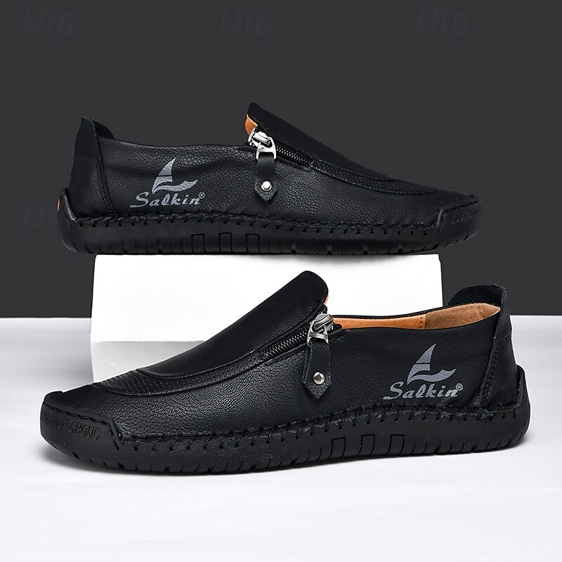 HOT ! Men's White Slip-On Faux Leather Sneakers with Zipper and Durable Rubber Soles – Casual Everyday Shoes for Comfortable Wear