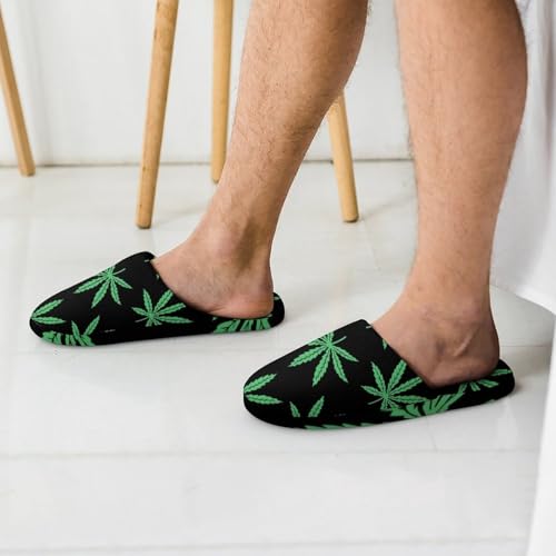 HOT ! Marijuana Leafs Weed House Slippers for Women/Men - Lightweight Cotton Quilted Home Slippers,Washable Non Skid Rubber Soles Indoor Breathable Shoes
