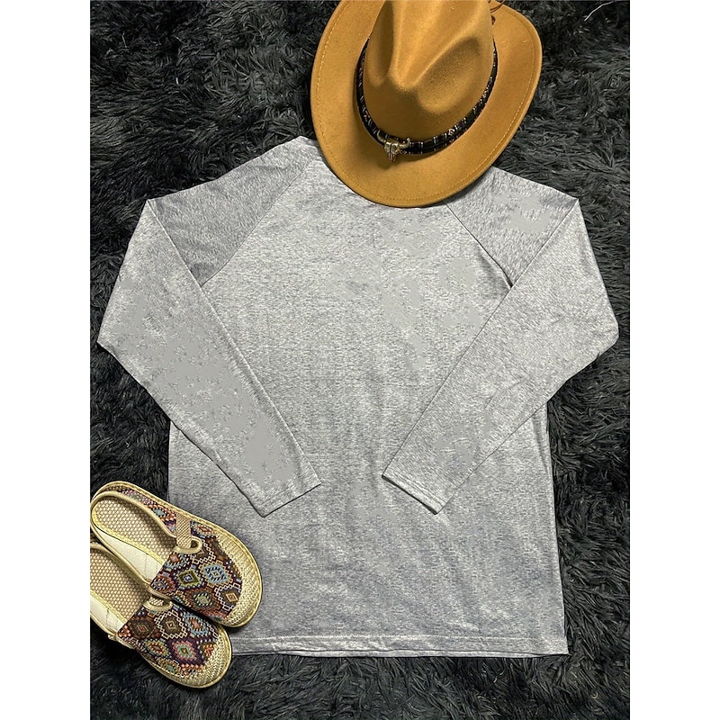 More information about Women's T shirt Long Sleeve V Neck Long Sleeve Graphic Casual Vintage Print Regular Tops Vacation Weekend Army Green Gray Spring Fall Prefall