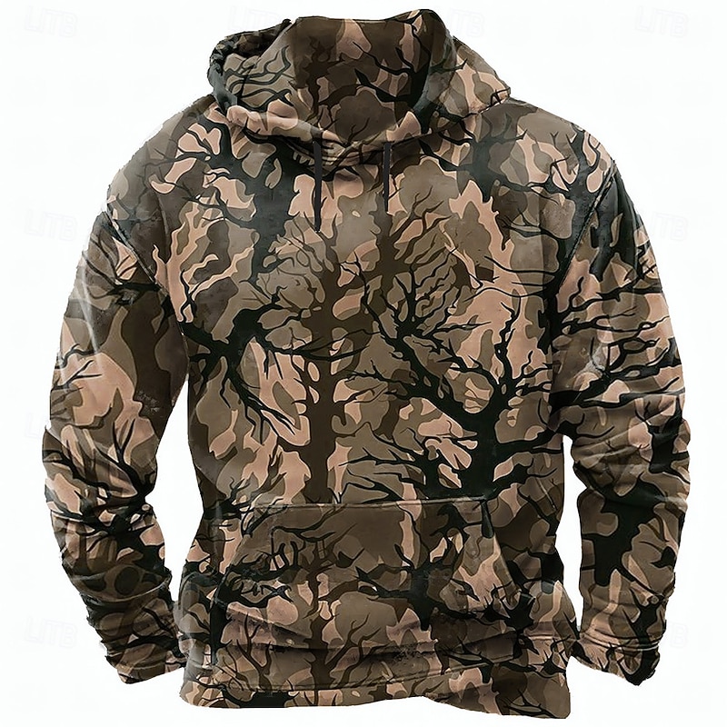 Men's Camo / Camouflage Hoodies Sweatshirt Ethnic Long Sleeve Crew Neck Holiday Hunting Purple Brown Drawstring Fall Winter Designer 9
