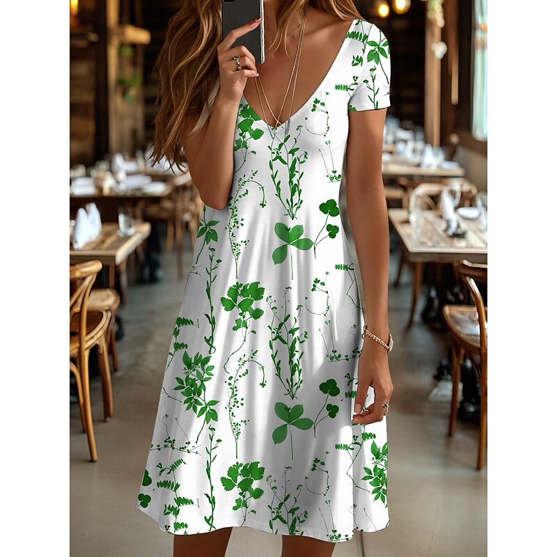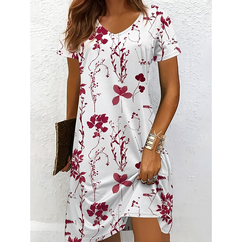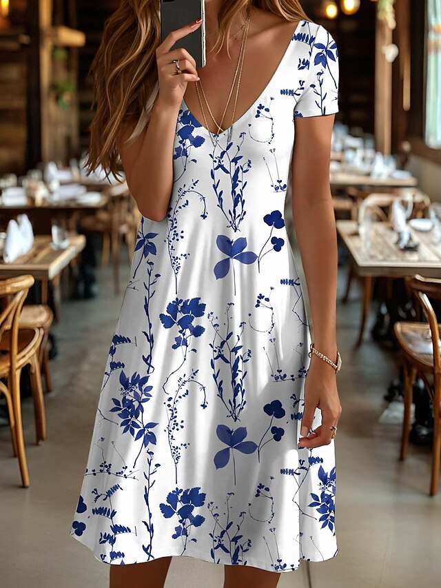 More information about Women's Midi Dress T Shirt Dress Tee Dress Sundress A Line Dress Vacation Casual Beach Beach Regular Fit Floral Graphic Short Sleeve V Neck Black And White Yellow Red Blue Summer Spring