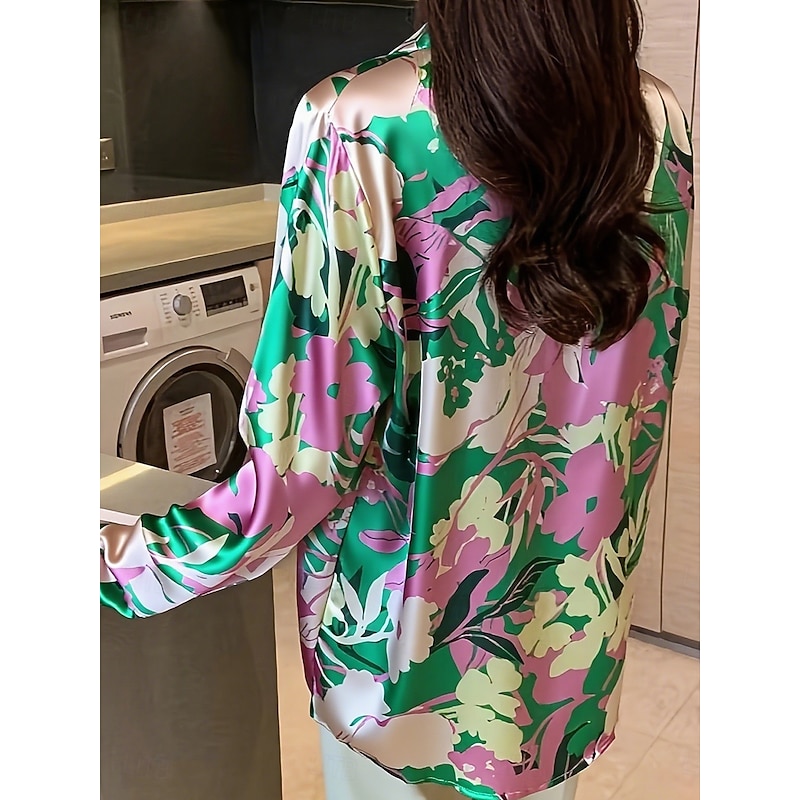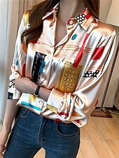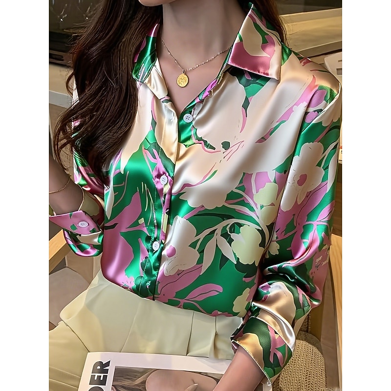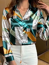 More information about Women's Work Shirt Graphic Geometric Elegant Stylish Basic Long Sleeve Shirt Collar Regular Tops Work Daily Yellow Pink Green Summer Spring Fall Winter