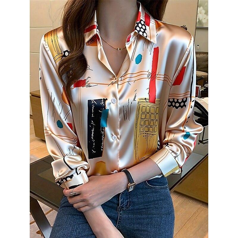 HOT ! Women's Work Shirt Graphic Geometric Elegant Stylish Basic Long Sleeve Shirt Collar Regular Tops Work Daily Yellow Pink Green Summer Spring Fall Winter