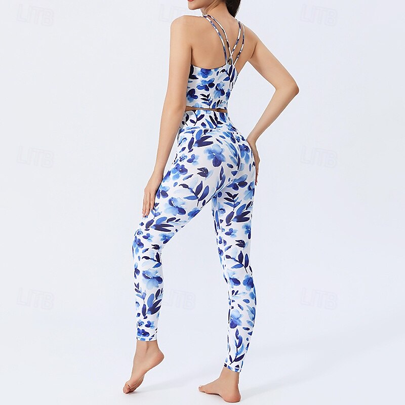 Women's 2 Pieces Activewear Set Sports Bras Seamless Leggings Printing Clothing Suit White Pink Gym Athletic Pilates High Waist Non See Through Tummy Control Sleeveless Sport Activewear Tight Fit 6