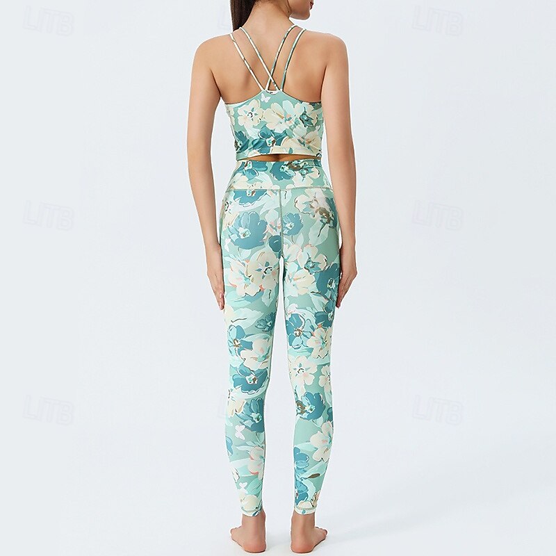 HOT ! Women's 2 Pieces Activewear Set Sports Bras Seamless Leggings Printing Clothing Suit White Pink Gym Athletic Pilates High Waist Non See Through Tummy Control Sleeveless Sport Activewear Tight Fit