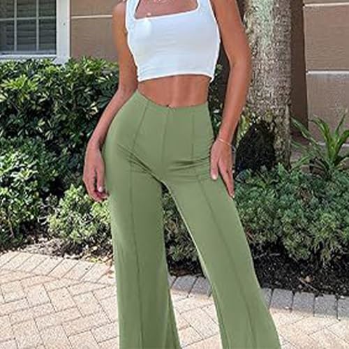 HOT ! Women's High Waisted Elastic Waistband Flared Pants Autumn Loose Casual Wide Leg Pants