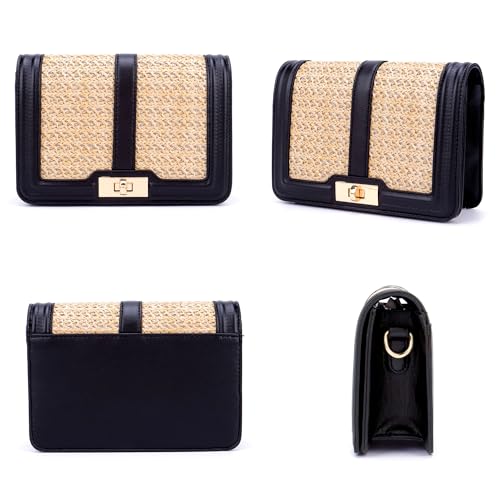 • Large Capacity Straw Crossbody Bags:It has enough room for your stuffs for summer vocation and daily necessities such as wallet, glasses, cell phone, cosmetics, cards and other necessities.Equipped with adjustable shoulder strap, it can be used as a vacation beach purse handbags, straw crossbody bag or shoulder bag clutch