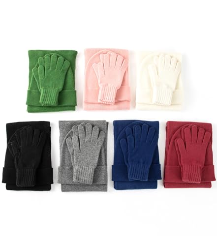 Unisex 3Pcs Cashmere Wool Scarf Hat Gloves Set, Soft Ribbed Cuffed Beanie Glove Scarves Set for Men and Women with Gift Box 6