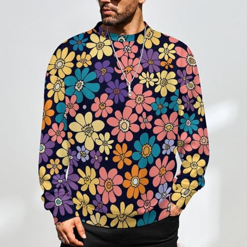 MoBlinko Mens Sweater Pink Purple Flowers Sweaters for Men Crew Neck Sweater for Men Lightweight Pullover 4