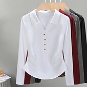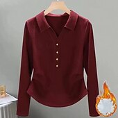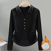 More information about Women's Velvet Shirt Casual Tops Buttons Long Sleeve Top Athleisure V Neck Solid Colored Warm Gym Outdoor Running Sportswear Activewear Black White Red