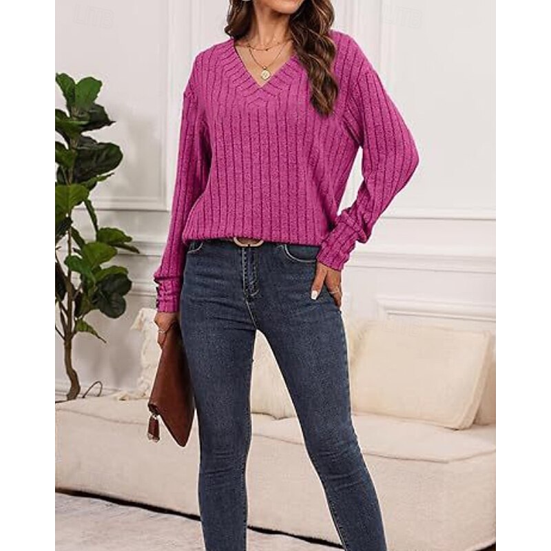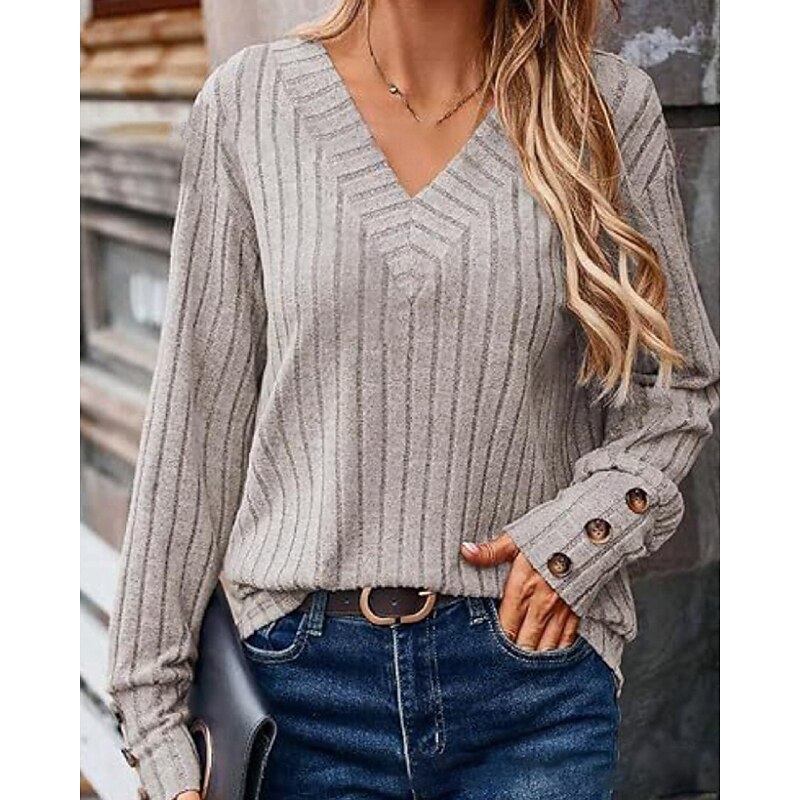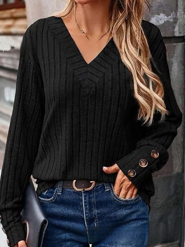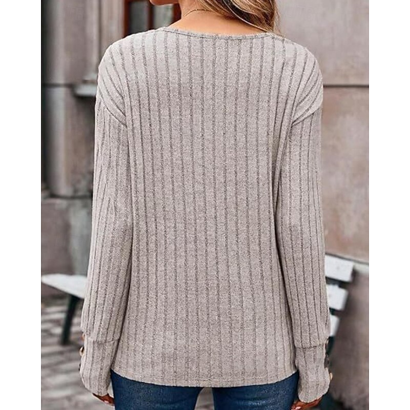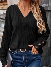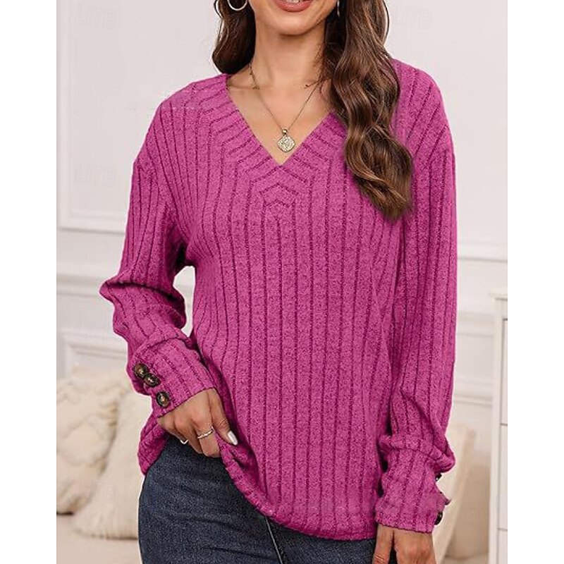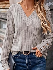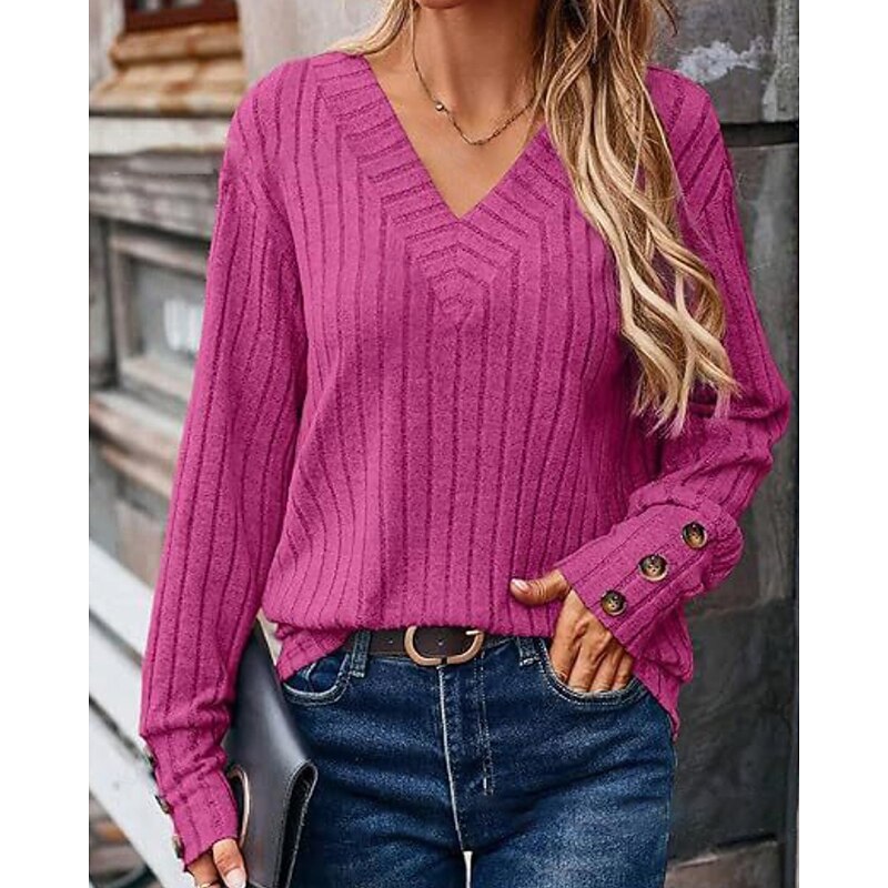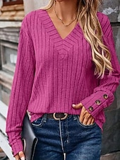 More information about Women's Shirt Blouse Plain Casual Long Sleeve V Neck Regular Tops Daily Holiday Going out Buttons Black Khaki Rose Pink Fall Winter
