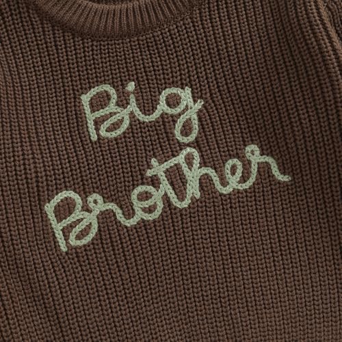 Big Brother Little Brother Matching Sweaters Toddler Boy Letter Crewneck Knitted Pullovers Tops Kids Fall Outfit (Big Brohter Sweater Brown,18-24 Months) 6