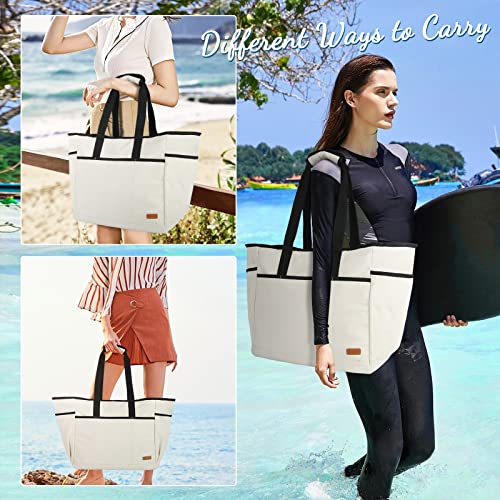 Lubardy Beach Bag for Women Large Beach Bags Waterproof Sandproof with Bottom Board Beach Tote Bag for Work/Travel/Swim/Pool (Large-40L-Beige) 4