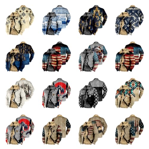 Cowboy Western Jackets for Men Long Sleeve Aztec Sherpa Fleece Lined Zip Up Ethnic Fashion Big And Tall Warm Coat 6