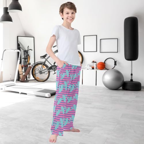 Boy's Pants Cactus Purple Blue Stripe Jogger Pants Elastic Waist Long Bottoms Trousers with Pockets 6-14 Years 4