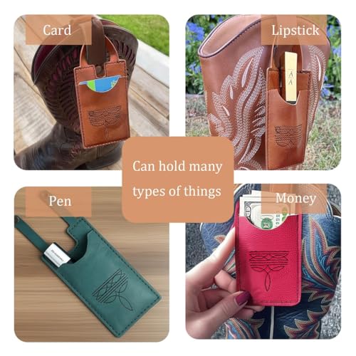 • Easy to Carry: The sleek small Leather Boot wallets woman is a must-have western accessory for rodeo nights, country concerts or everyday hands-free adventures. This credit card holder for women slips easily into any zippered boot with a secure snap strap, so you're ready to go in seconds - no modifications or alterations required, and no seat belt to fasten