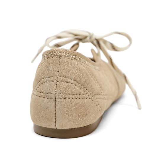 Suede Lace up Ballet Flats for Women-Round Toe Velvet Mary Jane Flats Strappy Cute Ballerina Shoes 4