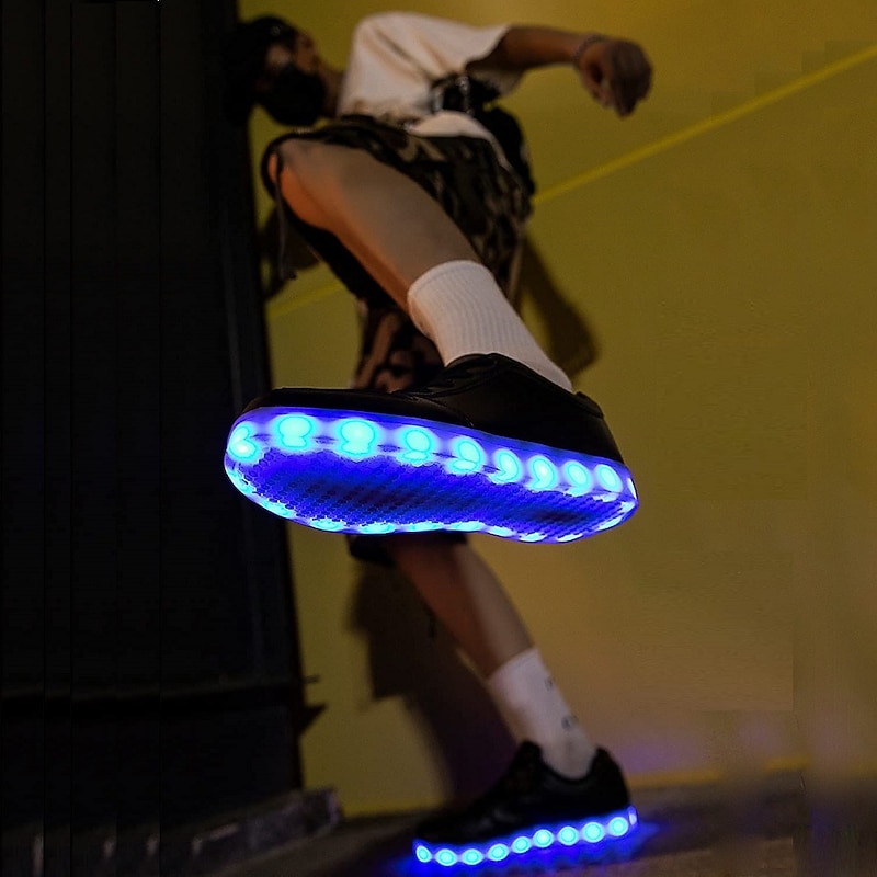 Highlights 1. Get ready to light up your running experience with these unisex LED shoes! 2. Conveniently charge your shoes with the included USB cable. 3. For best performance, we suggest using all of the power on your first use and then fully charging for future adventures. 4. Keep your shoes shining bright by avoiding water exposure. 5. Safety first: please keep away from children during charging.