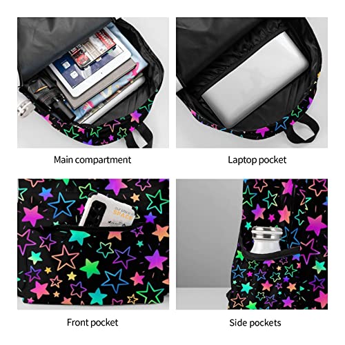 KiuLoam 17 Inch Backpack Bright Neon Stars Laptop Backpack Shoulder Bag School Bookbag Casual Daypack 5