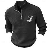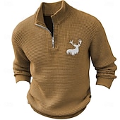 More information about Christmas Men's Reindeer Deer Pullover Sweater Jumper Zip Sweater Polo Sweater Zip Collar Retro Vintage Casual Party Evening Wear Daily New Years Eve Sweater Embroidered Knitting Warm Long Sleeve