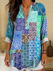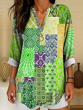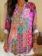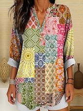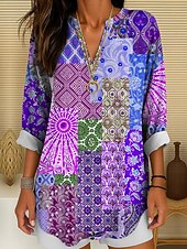 More information about Women's Blouse Tunic V Neck Long Sleeve Boho Casual Graphic Geometric Color Block Elegant Bohemia Vintage Regular Tops Daily Wear Print Yellow Red Blue Purple Green