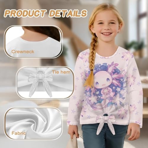 • 【Unique Designs】This cute girls sweatshirts are feature with crew neck, long sleeve, tie knot front, graphic print, relax fit. Easy to take on and off, matching double-needle cuffs and hems and tie knot front. Both comfy and stylish. These cute print tops can make a splash of energy in the kids.